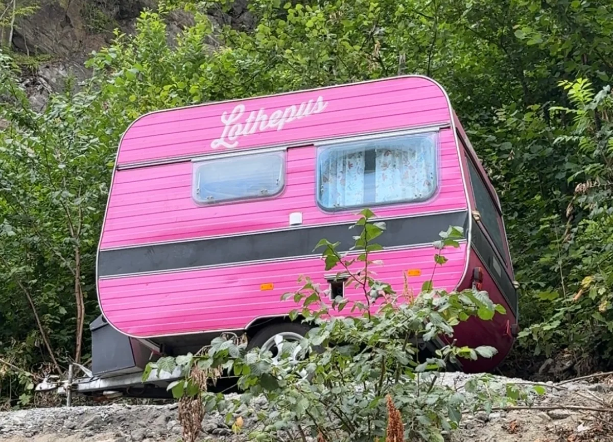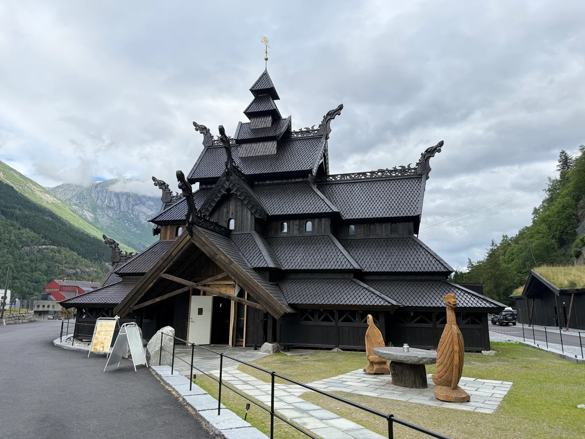 Vi måtte jo innom Lothepus camping og hytter i Odda, og se på Stavkirken.