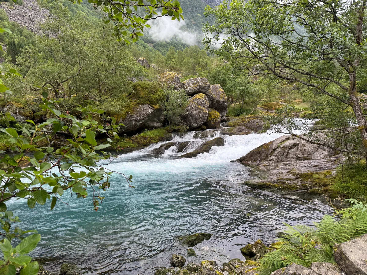 Etter en litt lengere etappe, kom vi til den tredje fossen ved navn Nykkjesøyfossen. Her tok vi en god pause for å spise lunsjen vår.