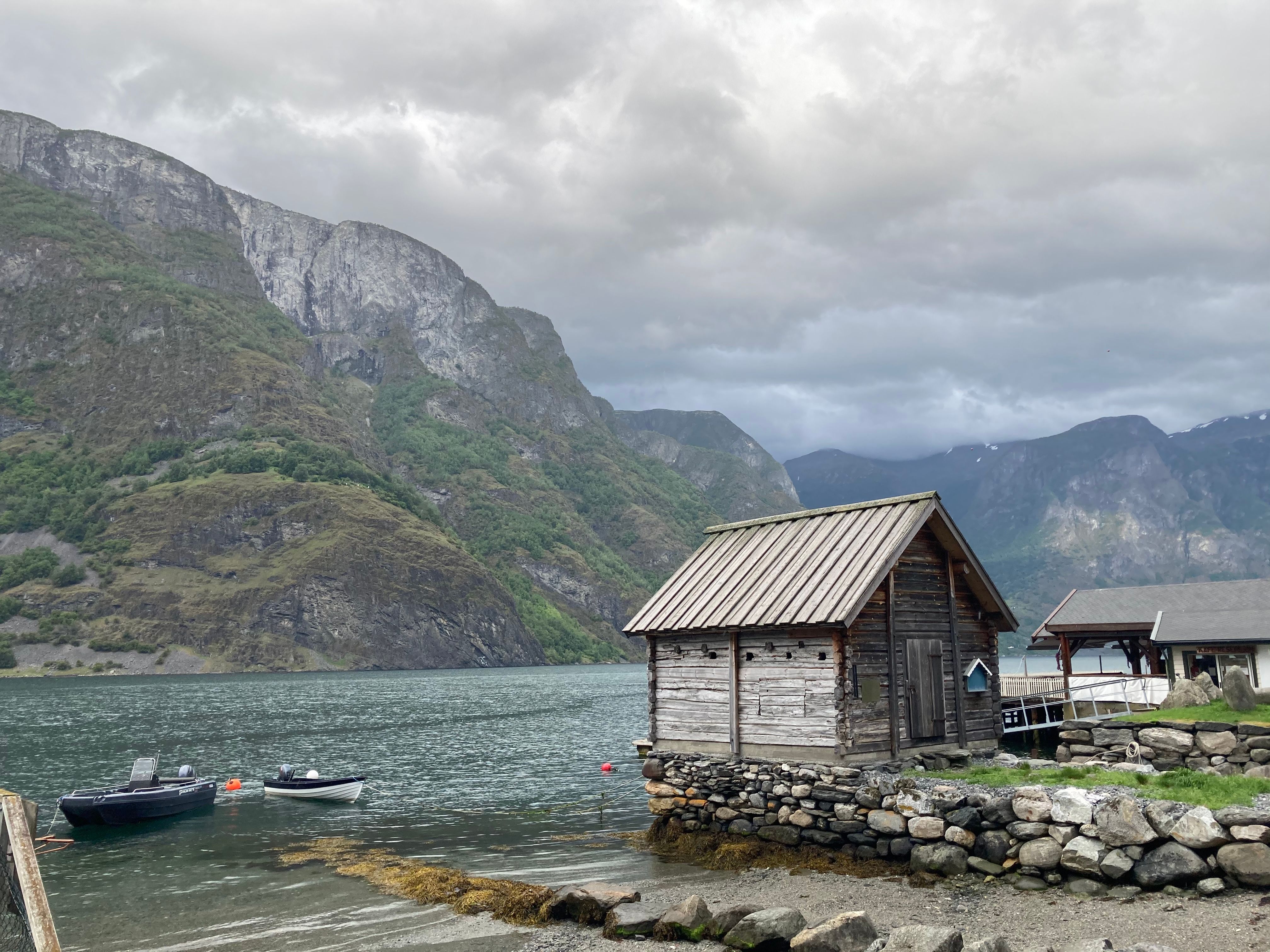 Vel fremme i Flåm får vi litt egentid til å rusle rundt, strekke på bena eller ta en kopp kaffe før vi går om bord på båten kl. 12.00 for et nydelig fjordcruise på Nærøyfjorden til Gudvangen.